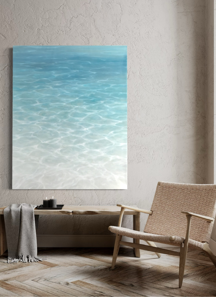 This was THE painting that kicked off Laura’s water series in 2016. During that year she was painting Mid-Century objects and architecture, when she began a painting of her beloved Mid Century Modern Eichler home. She became enamored with painting the light refraction patterns in the pool, and it opened up something she hadn’t expected to become her main focus.