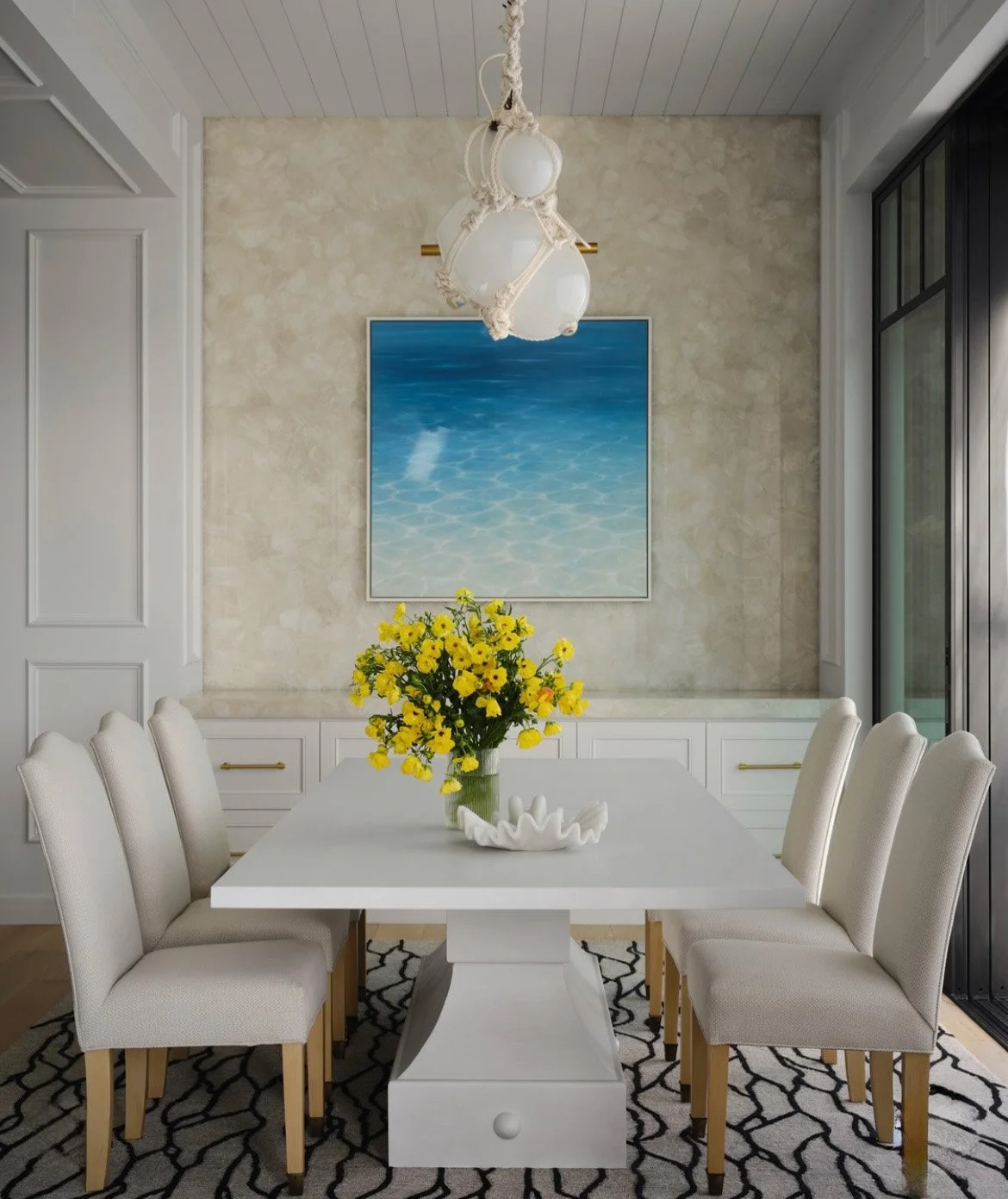 This project was especially meaningful because the painting was commissioned specifically for this home—a 10,000-square-foot space designed to celebrate bold color, artful energy, and modern California living. The Grace Blu team envisioned a statement piece that would bring a sense of calm movement amid the home’s playful, high-contrast palette, and I created a painting that captures just that balance—a moment of reflection within a world of motion.