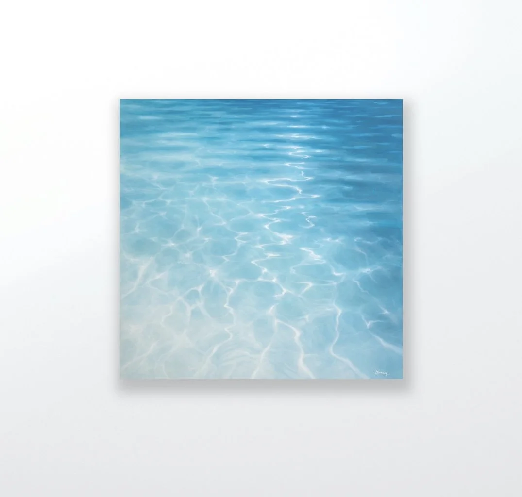 There’s something endlessly soothing about painting water — it demands patience and presence. With Poolside Glow, I wanted to explore that space between movement and stillness, where light becomes both subject and silence.